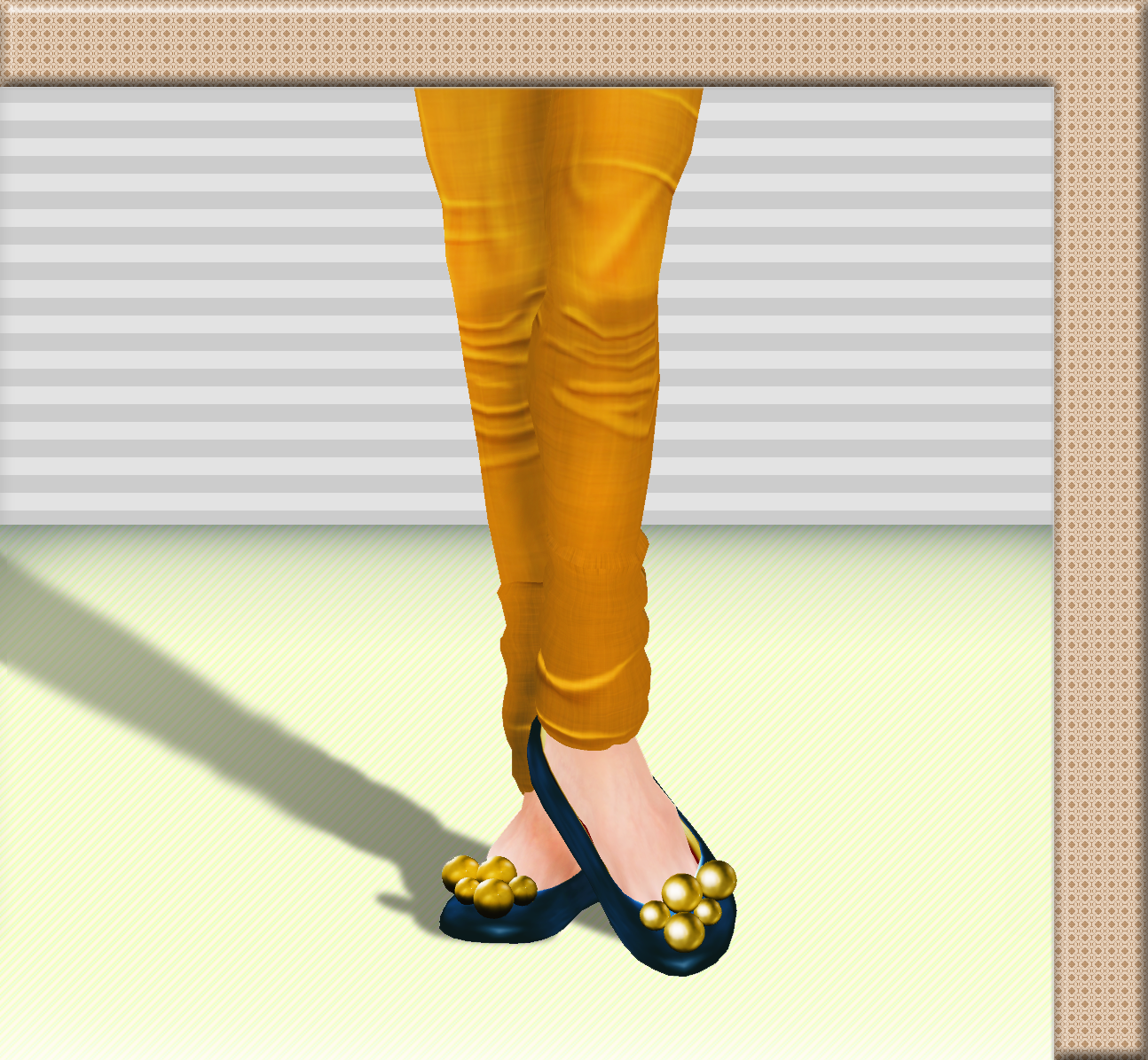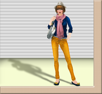 I love combining yellows and oranges with navy! So when I saw these flats from Atelier AM I was all sorts of "Yay!". The pants I chose are from So Many Styles. I bought these a at a reduced price a long while back and when i went to look for them again I couldn't see them so it is likely that they are unavailable. Worry not however! Irie has OODLES of other amazing bottoms available to buy :D.